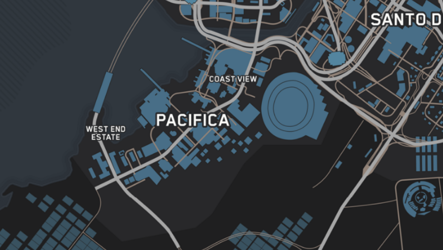 Cyberpunk 2077, CD project RED, 2020, карта района Найт-сити Пасифики и сам район