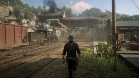 Red Dead Redemption 2, Rockstar Games, 2018 карта Аннесберга и сам город построенный вдоль железной дороги