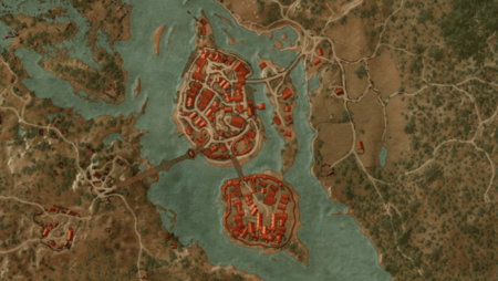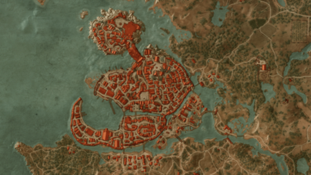 Новиград в The Witcher 3: Wild Hunt (2015) также можно выделить не настолько сильно очевидное сочетание структур: линейная у порта, радиальное у церкви Вечного Огня. Именно за счет неоднозначности и менее структурного расположения домов, создается ощущение хаотичного расположения.