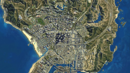 Карта путей Лос-Анджелеса, 1958 // Gta V, Rockstar Games, 2013, вид сверху на Лос-Сантос