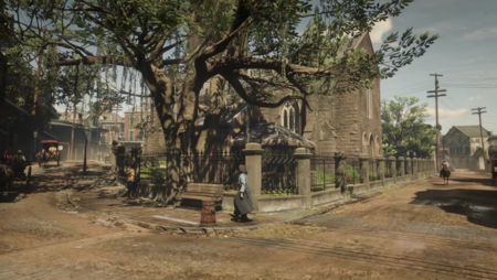 В Сен-Дени из Red Dead Redemption 2 (2018) районы выделяются через разделение главной центральной дорогой.