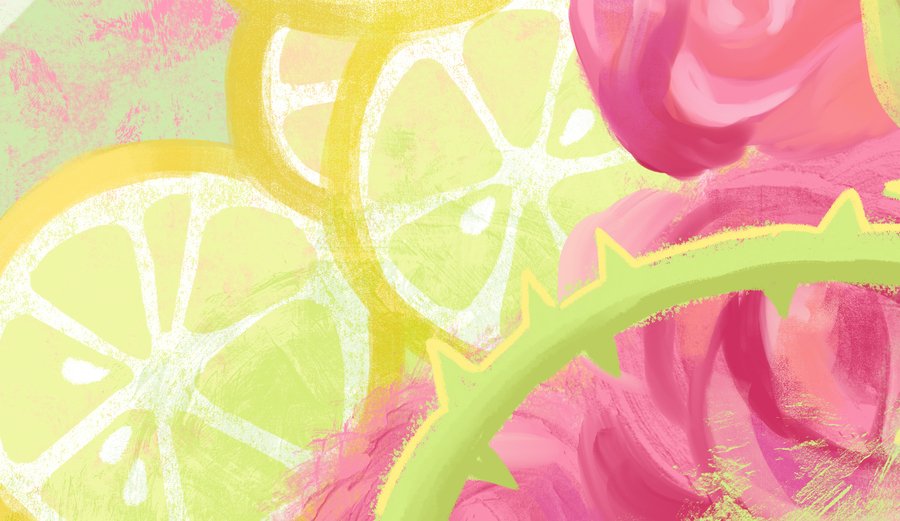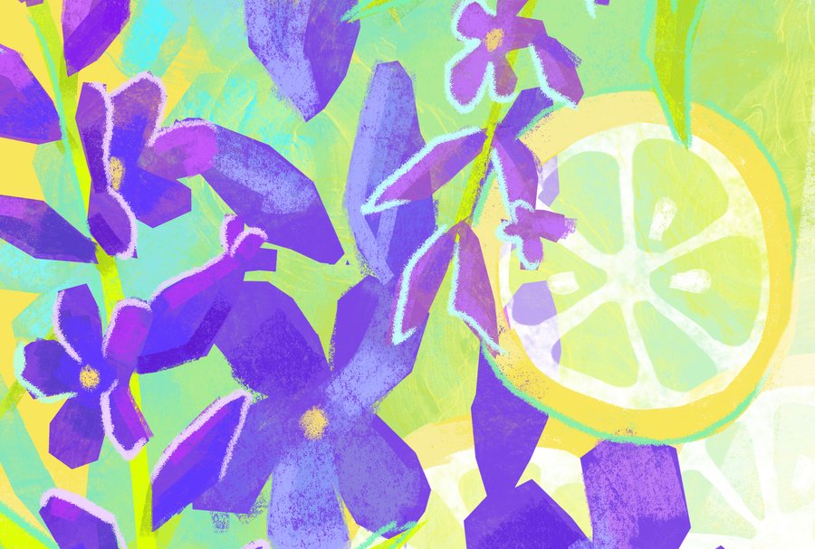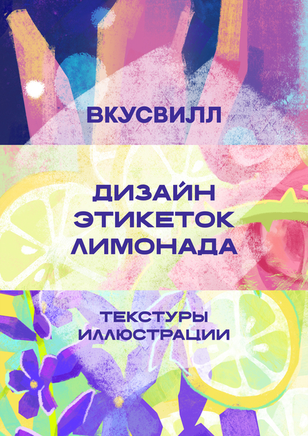 Этикетки с крупным гротескным шрифтом и текстурными летними иллюстрациями