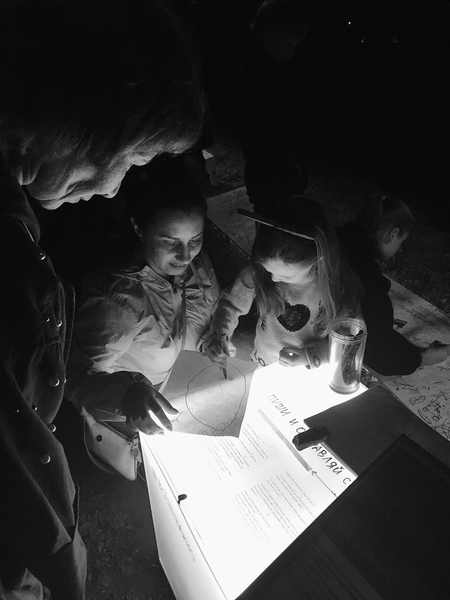 Партисипаторная световая инсталляция о смене жизненных приоритетов. Художница ставит перед собой задачу сбора анонимных размышлений различных людей и, не модернизируя информацию, заключает её в письменный формат.