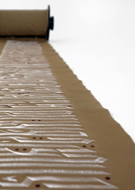 Книга художника — оммаж манифесту Класа Ольденбурга «я за искусство, которое…», выполненная в виде каллиграфического свитка, стилизованного под увеличенную катушку ниток