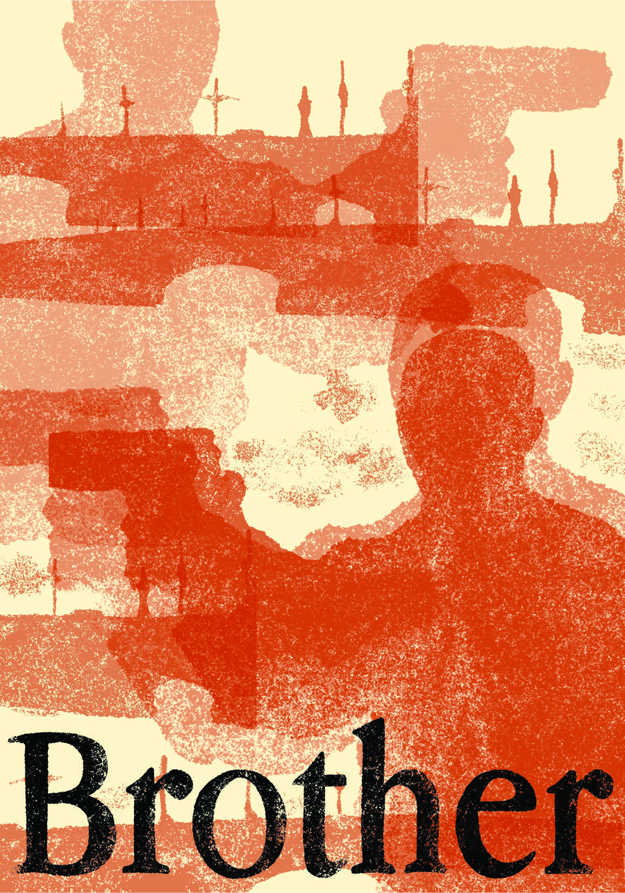 6. Sixth Alternative Poster This Brother (1997) movie poster features the silhouette of the main character with a gun, arranged in a stacked composition that creates a sense of fragmentation and shadowy memory. The background features crosses that reinforce the theme of solitude and death in a harsh criminal world. The faded earthy colors give a nostalgic and suspenseful feel, while the classic typography at the bottom adds a dramatic and serious feel. The poster captures the essence of the movie depicting the moral journey of a young man in the brutal landscape of post-Soviet Russia.