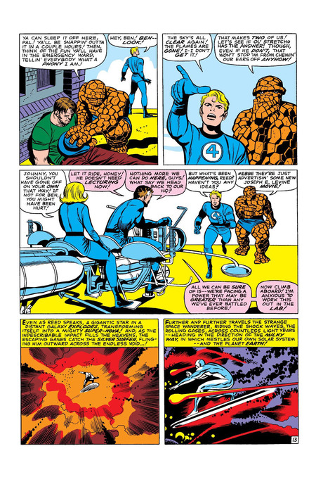 В комиксе Фантастической четверки динамика передается теми же способами, что и в Человеке пауке. Активно использующиеся спидлайны, линии от взрывов, чтобы показать силу и скорость действия.