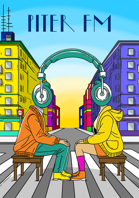 This work is made in a retro pop-up design style. The illustration shown uses vibrant colors. Using headphone elements as the main point.