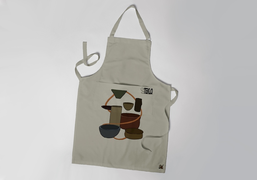 Prompt: Mockup of a stylish apron as merchandise, designed with a minimalist logo on the front. The apron is made of high-quality fabric with clean stitching and a modern, sleek look. The logo is displayed in the center of the apron in a simple, elegant font. The apron is shown in a flat lay layout, with soft lighting highlighting the fabric texture and logo. The background is neutral to keep the focus on the apron. The overall aesthetic is professional, contemporary, and ideal for branding merchandise for a design studio, café, or boutique.