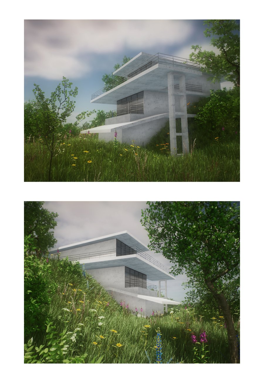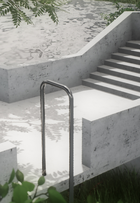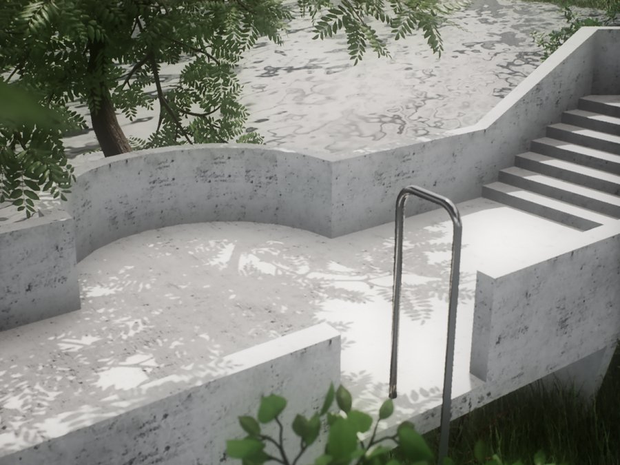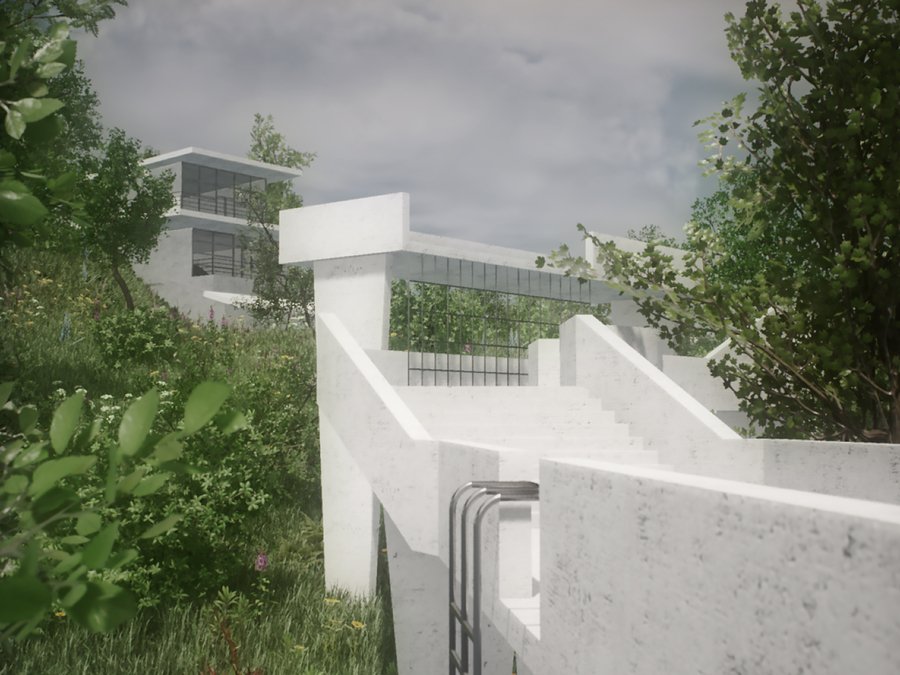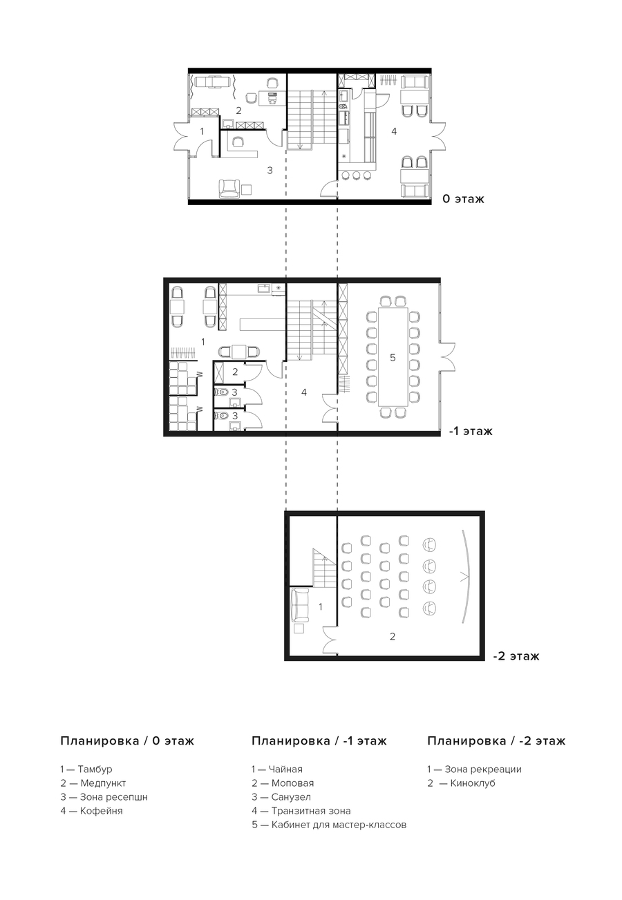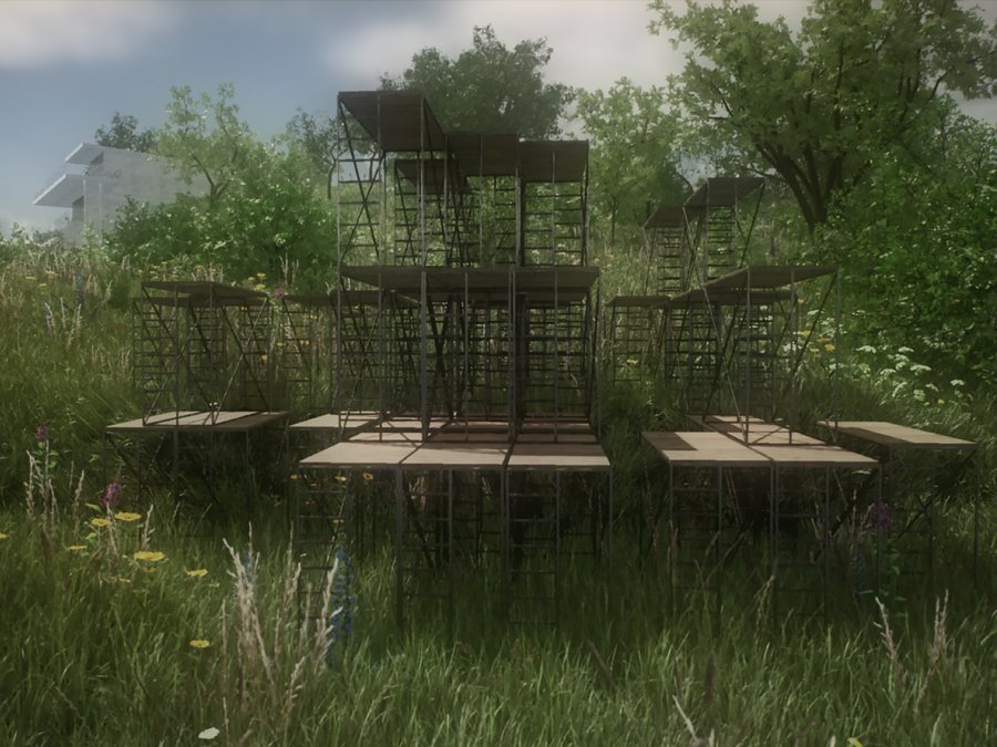 Детский городок состоит из четырех зон: площадки из бетонных сфер, тропы, конструкции из строительных лесов и чайного домика. Важной задачей при проектировании стала необходимость в построении диалога между архитектурой и рельефом местности. Таким образом элементы городка, стоящие на наземных опорах, повторяют высотность ландшафта и акцентируют форму надпойменных террас реки Пахры. Так тропа делает более выразительным ее движение, конструкция из строительных лесов взаимодействует с платформообразной стороной ландшафта, бетонные сферы указывают на начало более крутого подъема холма, а также чайный домик подчеркивает топографию местности.