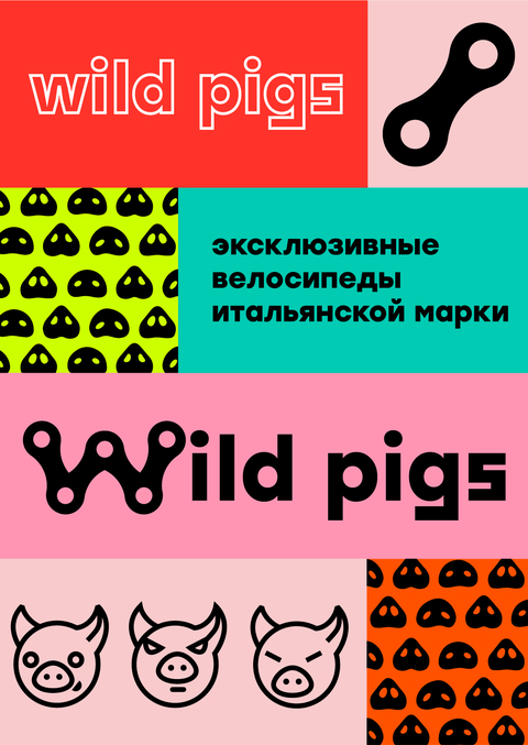 Visual constants play around the name of the store: Wild pigs is a slang term for the scream of the loose brakes. The main elements are a link in a bicycle chain and three characters that provide the basis for a number of interesting solutions in the field of SMM communications of the company. The light and catchy corporate identity developed by the Design Laboratory reflects the sporty and informal format of the store.