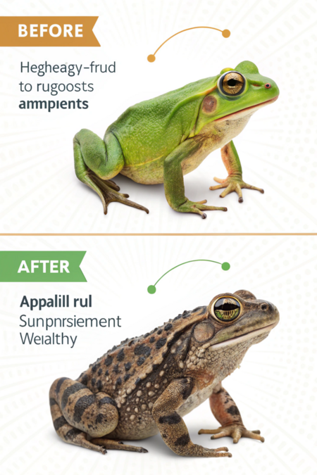Promits: Before & After: Images comparing an unhealthy-looking amphibian with one that has been taking the supplements, demonstrating the transformation.