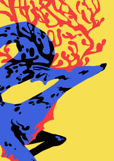 «олень с рыбьим хвостом и жабрами плывет, гордо неся на голове рога-кораллы»