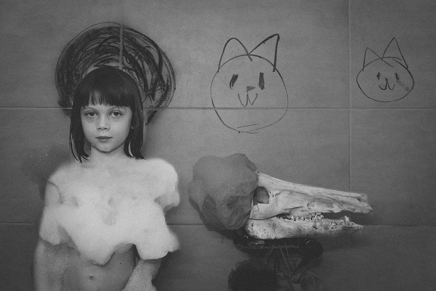 Говоря о спасении духовном, я обращаюсь к христианской символике, воспроизводя в своих работах отсылки к узнаваемым иконам и символам апокалипсиса. Таким образом, снимая своих детей, я создаю игровую, театральную форму действия. Мы создаем свою пьесу, в которой не задаем вопросы, где герои принимают бессмысленность своего существования как данность. Это принятие и дает право на счастье.