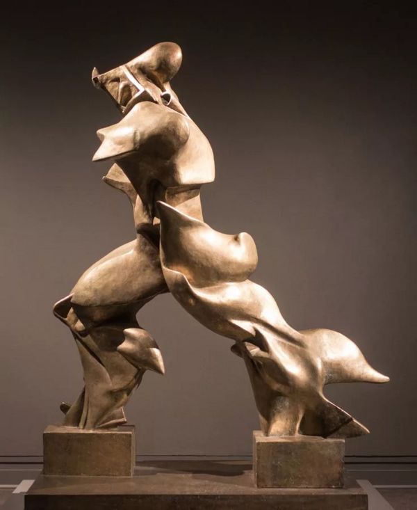 Эта картина представлена как батальное полотно. Главным символом движения и силы являются не машины, а фигуры лошадей. Для Боччони мир современности и мир прошлого не были разделены. Все, что природное и искусственное, смешивалось в едином порыве, создавая ощущение интенсивности и скорости.