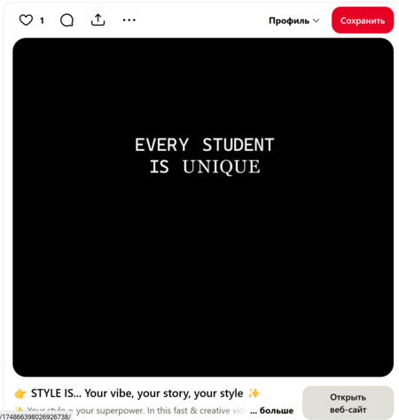 рус. «👉 СТИЛЬ — это твой вайб, твоя история, твоя уникальность ✨» https://pin.it/4DWzu4Ndc