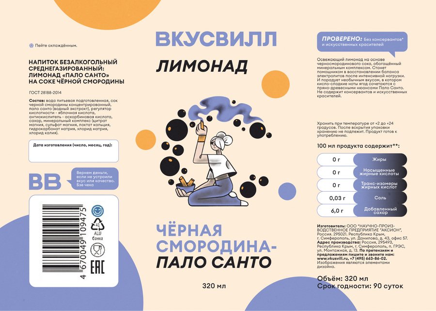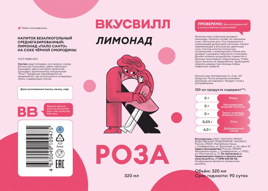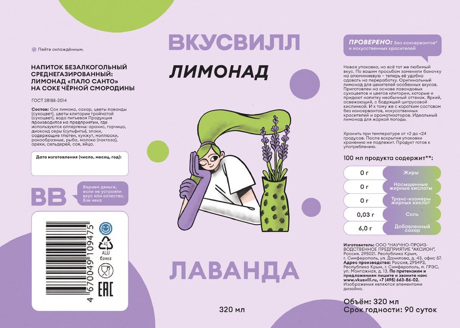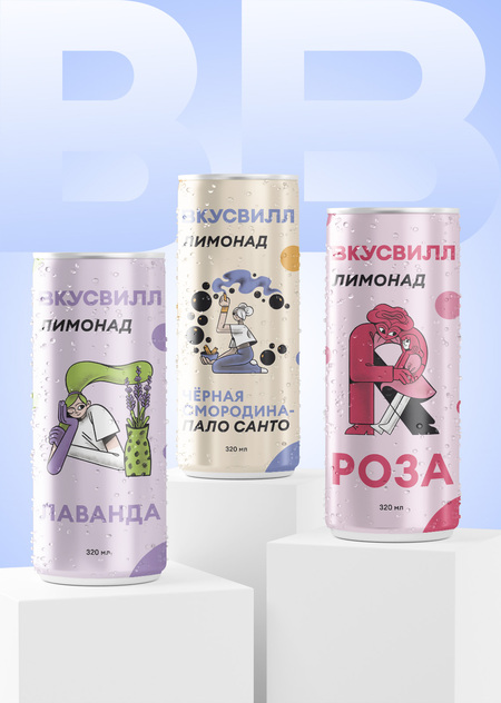 Разработка дизайна для лимонадов от ВкусВилл — «Лаванда», «Роза» и «Чёрная смородина-Пало Санто».
