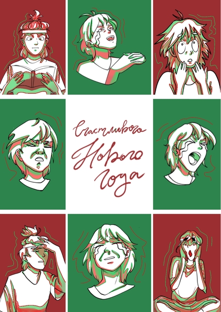Серия работ представляет собой 3 иллюстрации с комическим содержанием на тему Нового года.