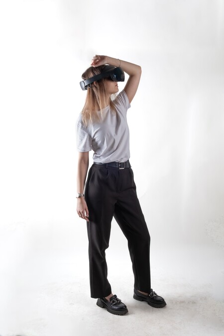 Фотосессия показывает, как технологии становятся естественной частью нашей жизни. VR-гарнитура здесь — не просто гаджет, а стильный аксессуар, органично вплетающийся в повседневный образ.