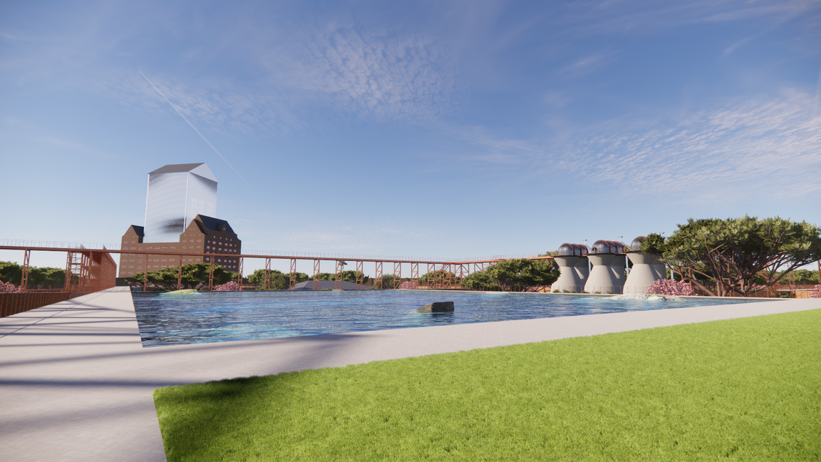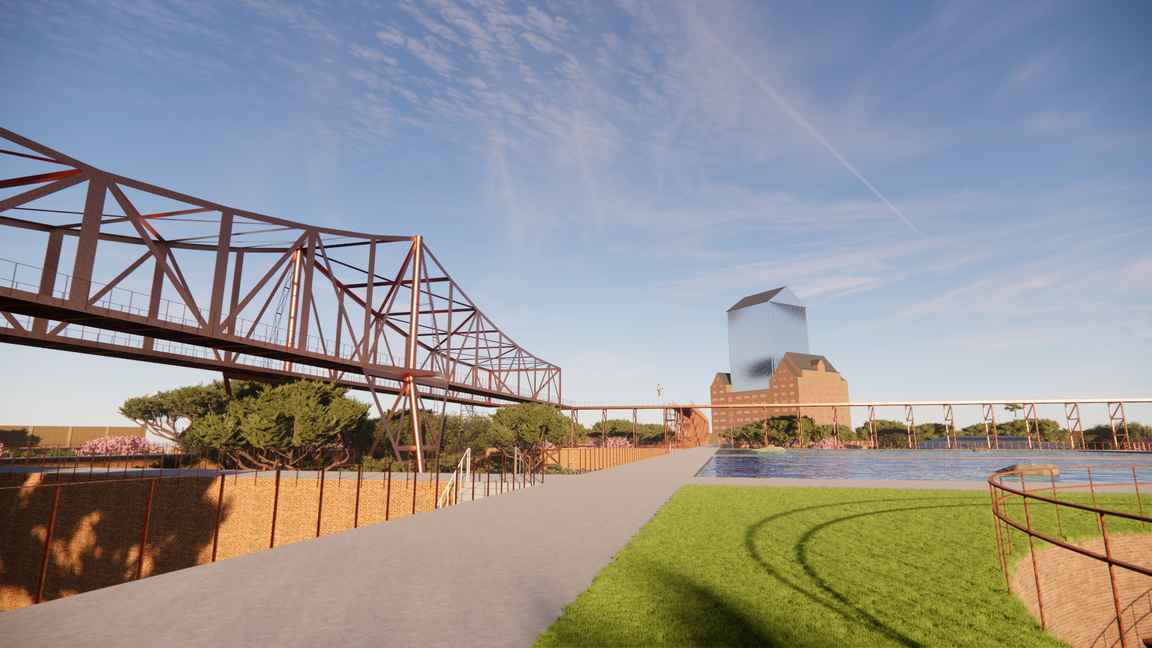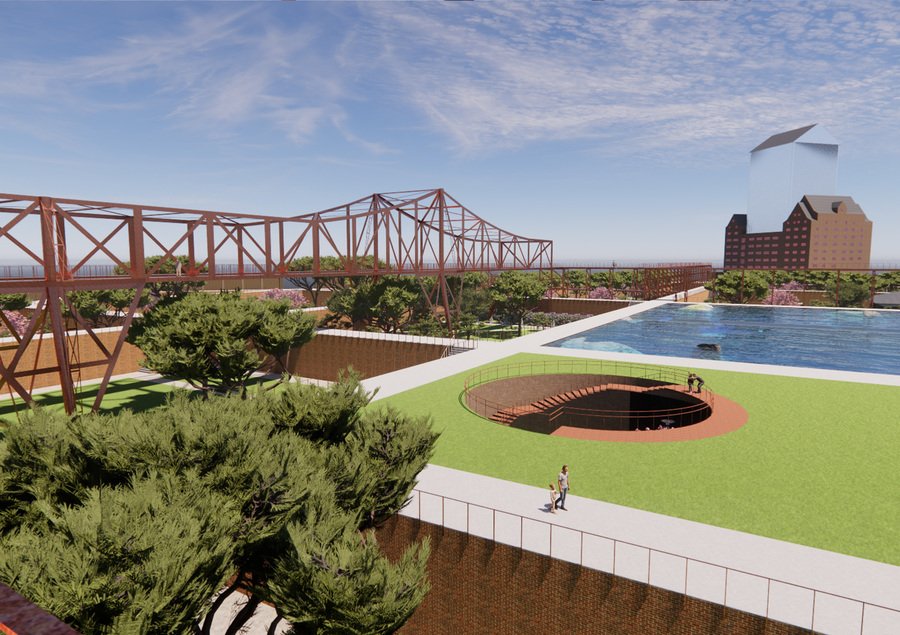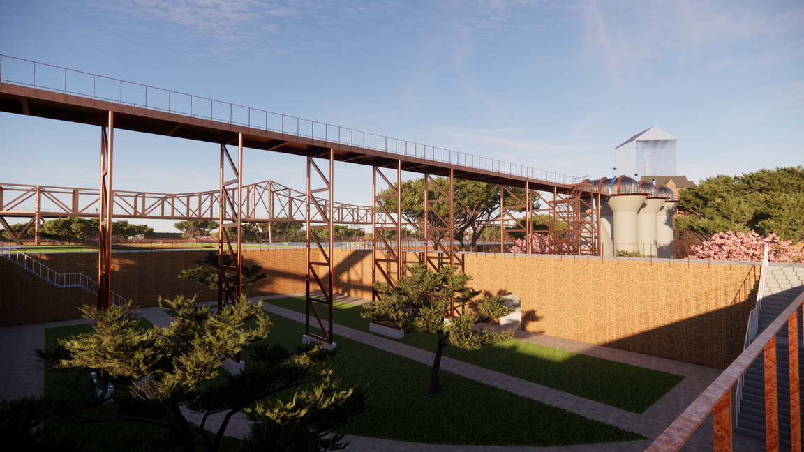 Основная концепция проекта вдохновлена ландшафтным парком Дуйсбург-Норд в Германии. Идея дизайна заключается в сохранении промышленных сооружений, которые интерпретируются как независимые системы, и связать их между собой по средствам садов, террас, лестниц. Главной особенностью парка является особая система дорожек, которые делят территорию на несколько уникальных зон.