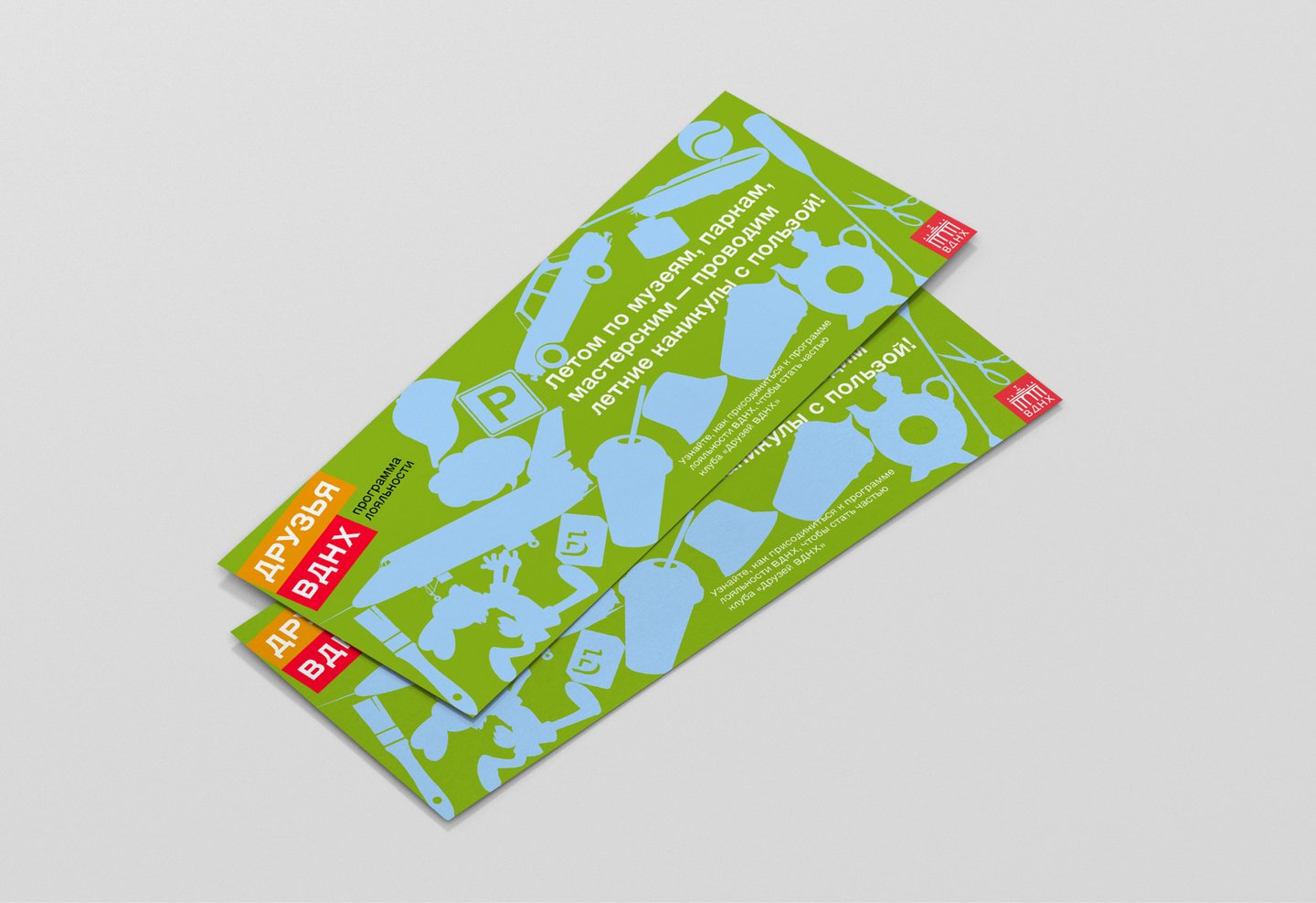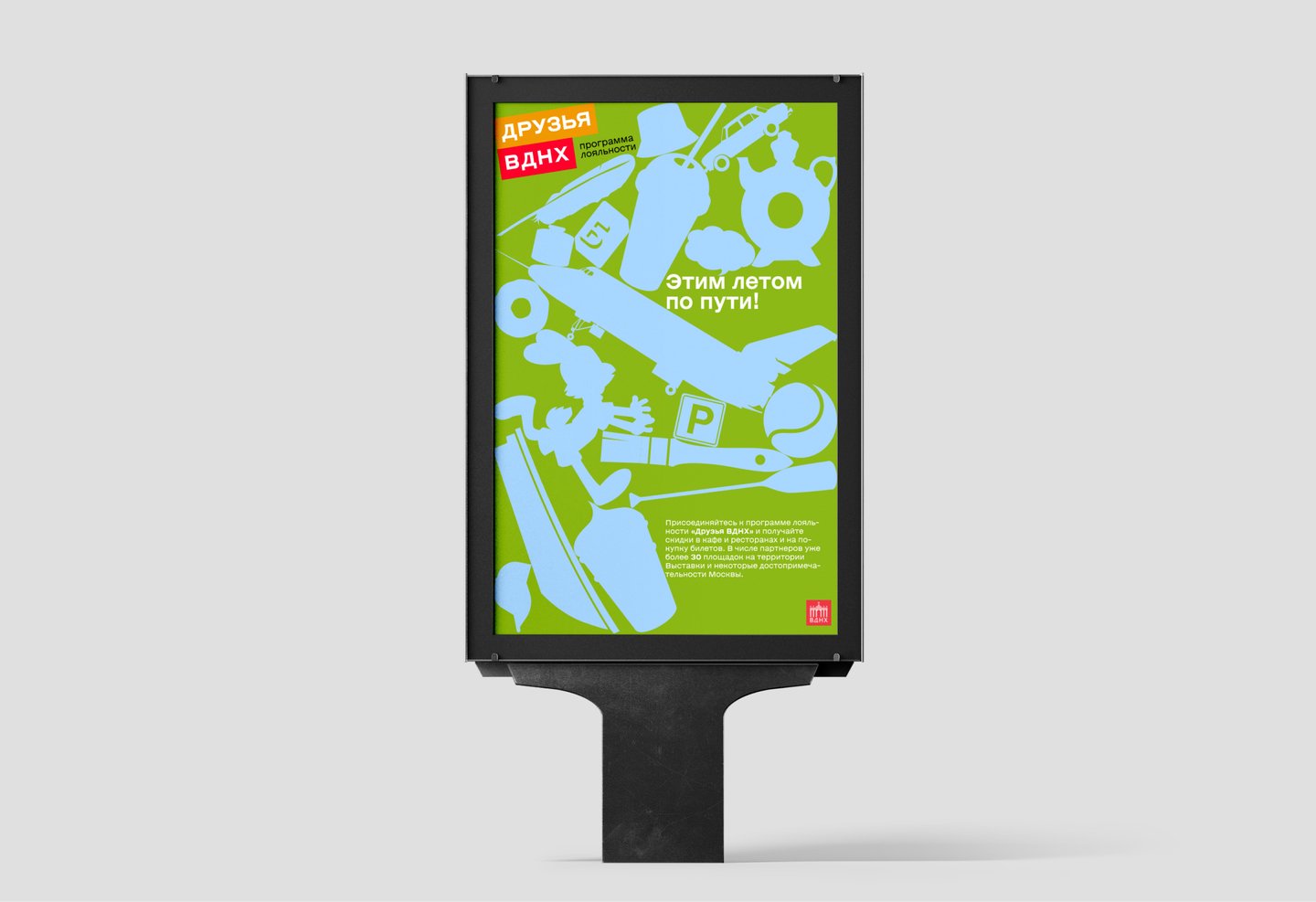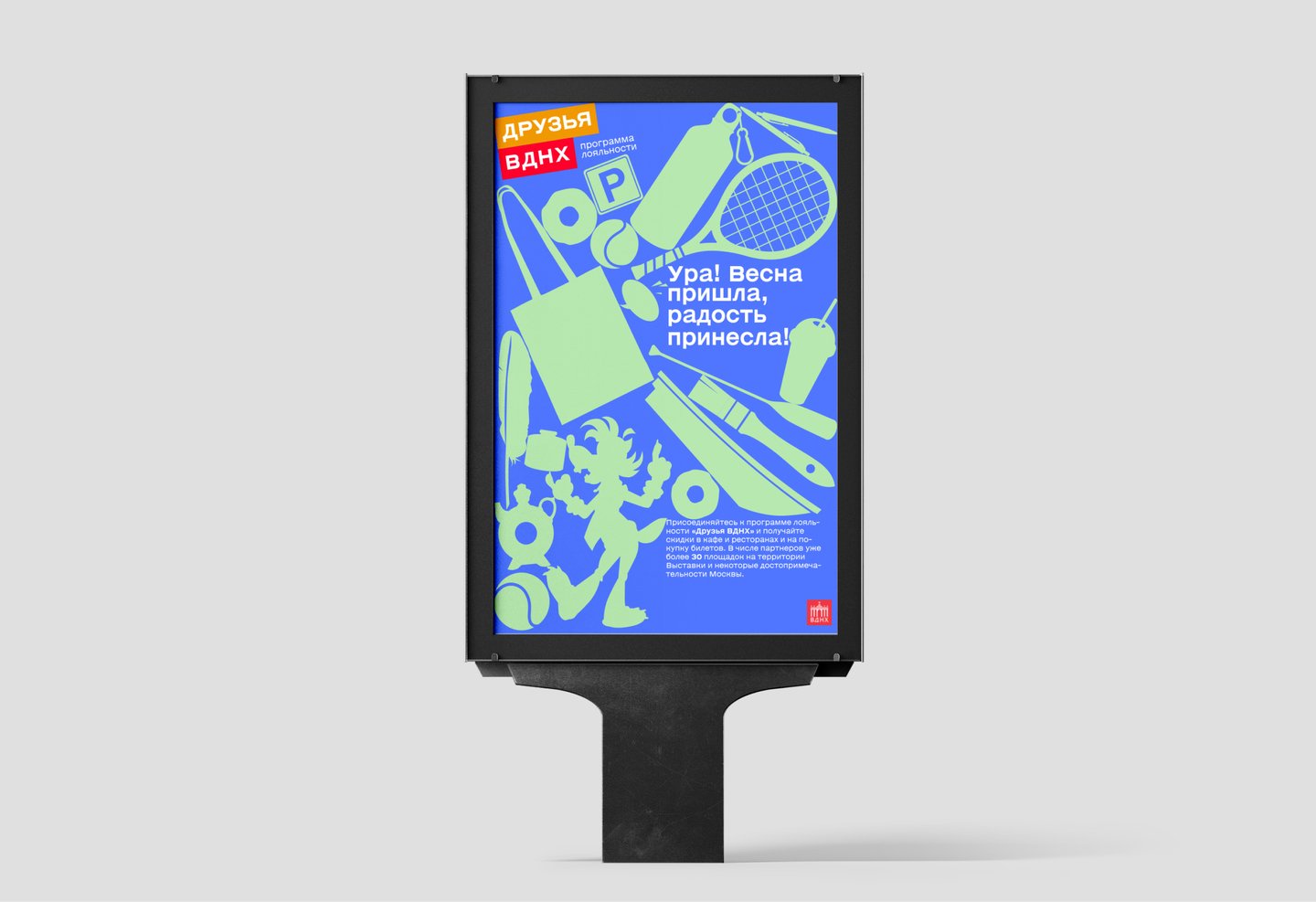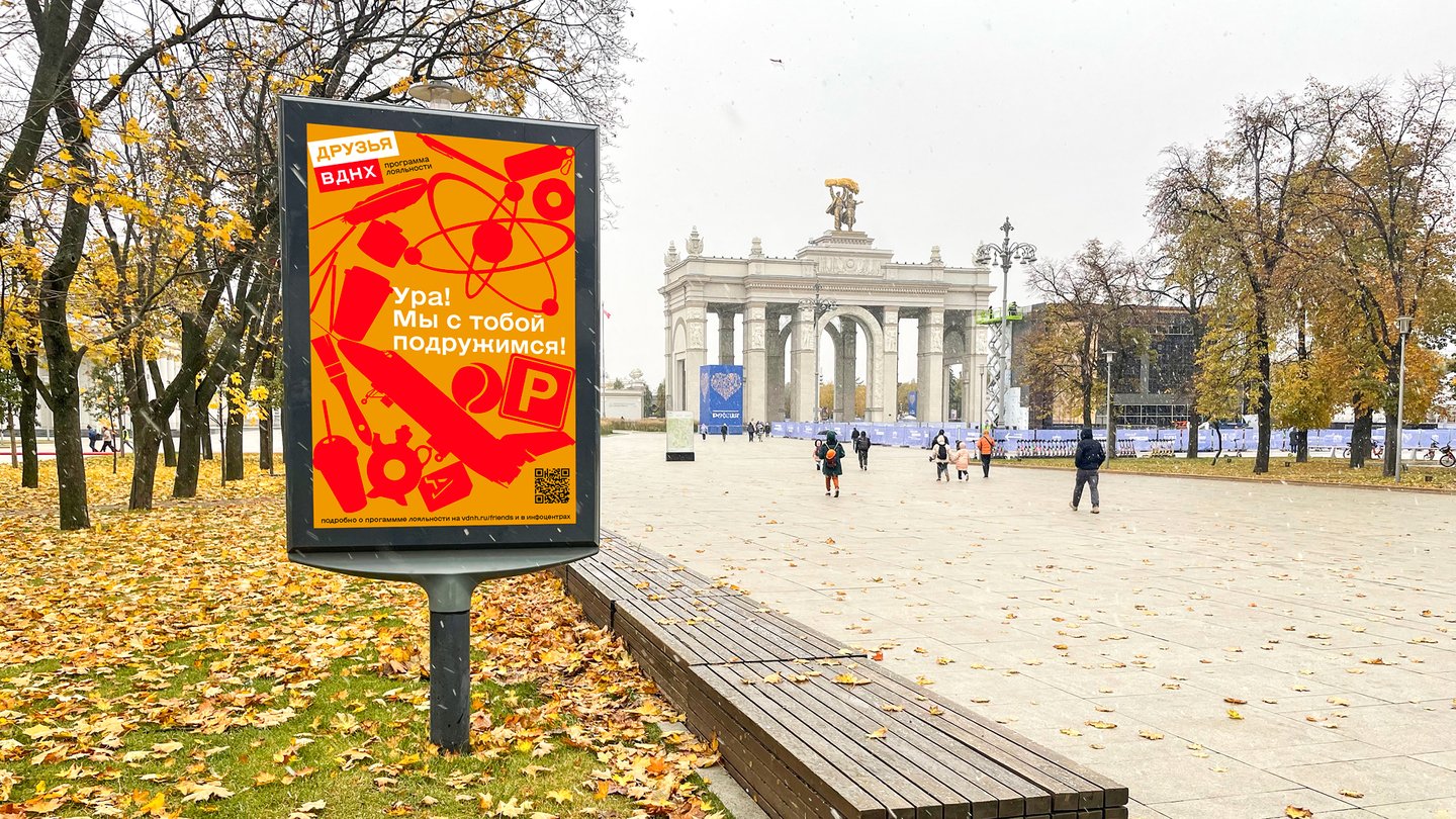 В проекте представлен концепт обновленного визуального стиля программы «Друзья ВДНХ». Фирменный стиль включает в себя, помимо основных констант ID, разработку KV/сценарий видеоролика