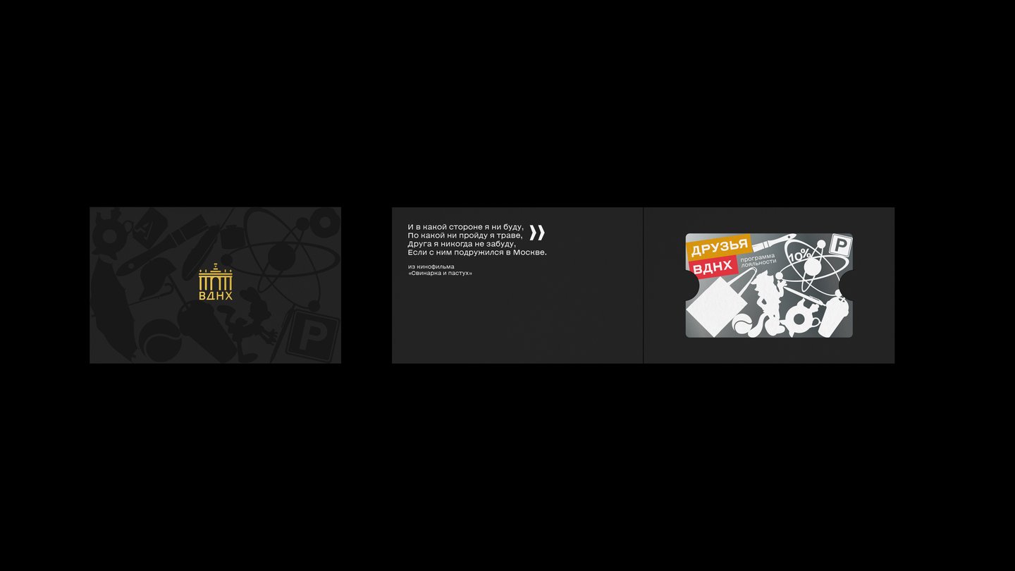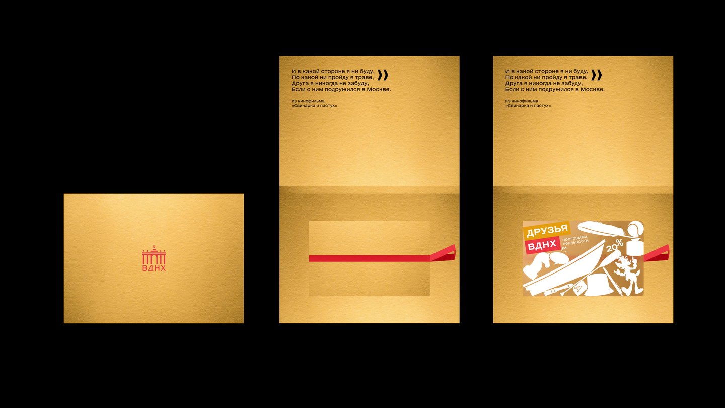 БАЗОВЫЙ СТАТУС Скидка 5% — помещается в маленький бумажный конвертик с золотым тиснением лого ВДНХ. Такой конвертик приятно подарить другу.