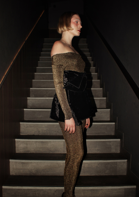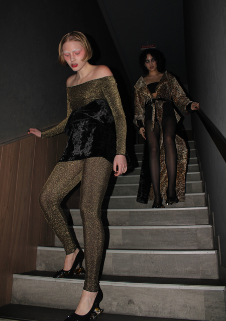 Le Palace становится не просто клубом, а культурным феноменом, отражающим взаимодействие знаменитостей и обычных людей. Это пространство, где люди могут исследовать свои желания и амбиции, устанавливая новые связи в атмосфере свободы и креативности. Здесь они могут быть самими собой, наслаждаясь острыми ощущениями на каждой вечеринке. В своей коллекции мы вдохновлялись эстетикой 1980-х годов, перерабатывая образы посетителей клуба. Леопардовая ткань символизирует раскрепощенность и свободу, а крой боди, переходящий в халат вдохновлен сценой из фильма, где любовник Ив Сен-Лорана надевает халат после их интрижки.