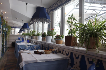 Интерьер ресторана выдержан в стиле позднего классицизма. Тщательно отобранные детали убранства зала позволяют воссоздать атмосферу настоящего дворянского гнезда, с его утонченной элегантностью и живым теплом давно и с любовью обжитого дома.