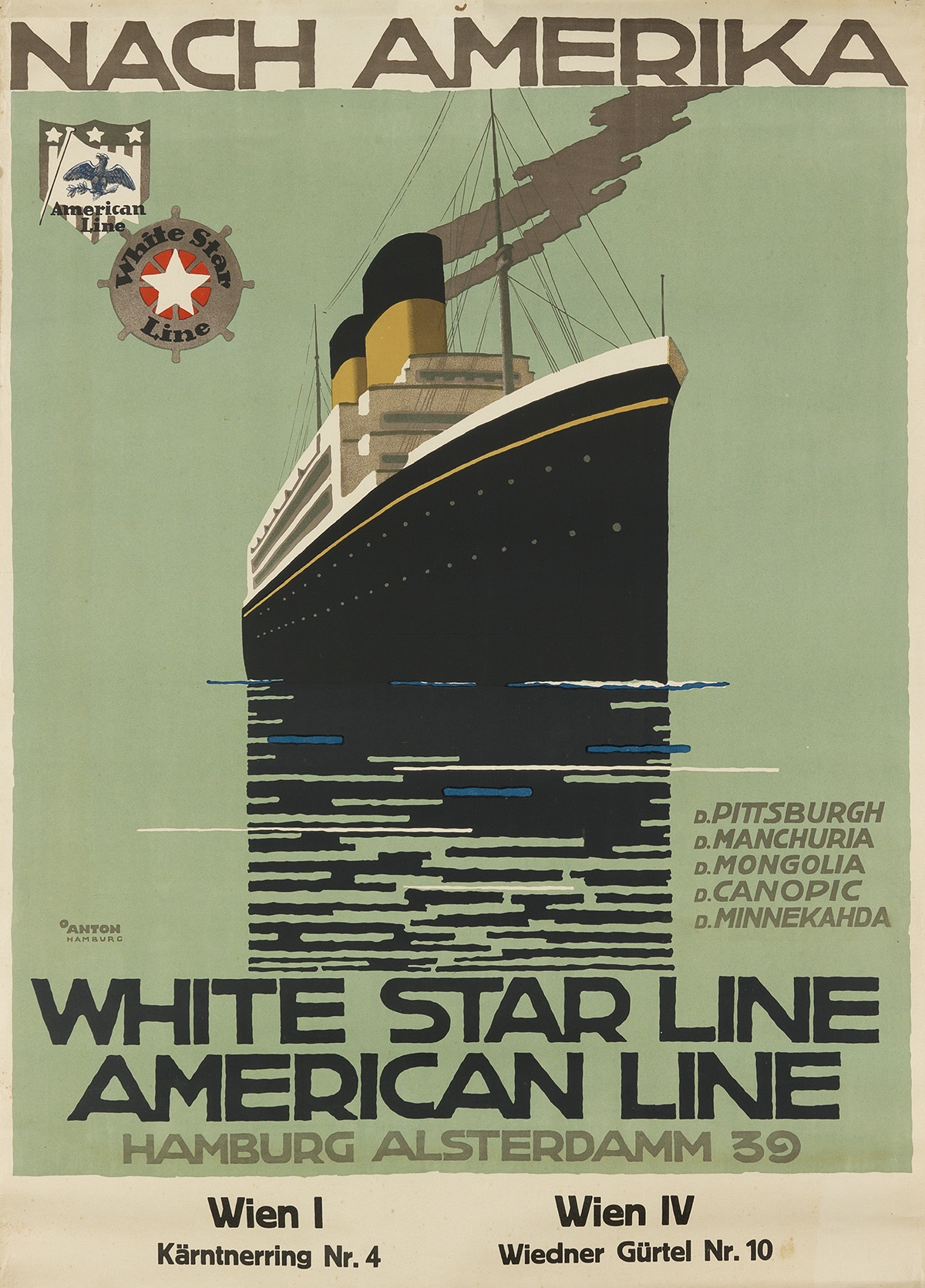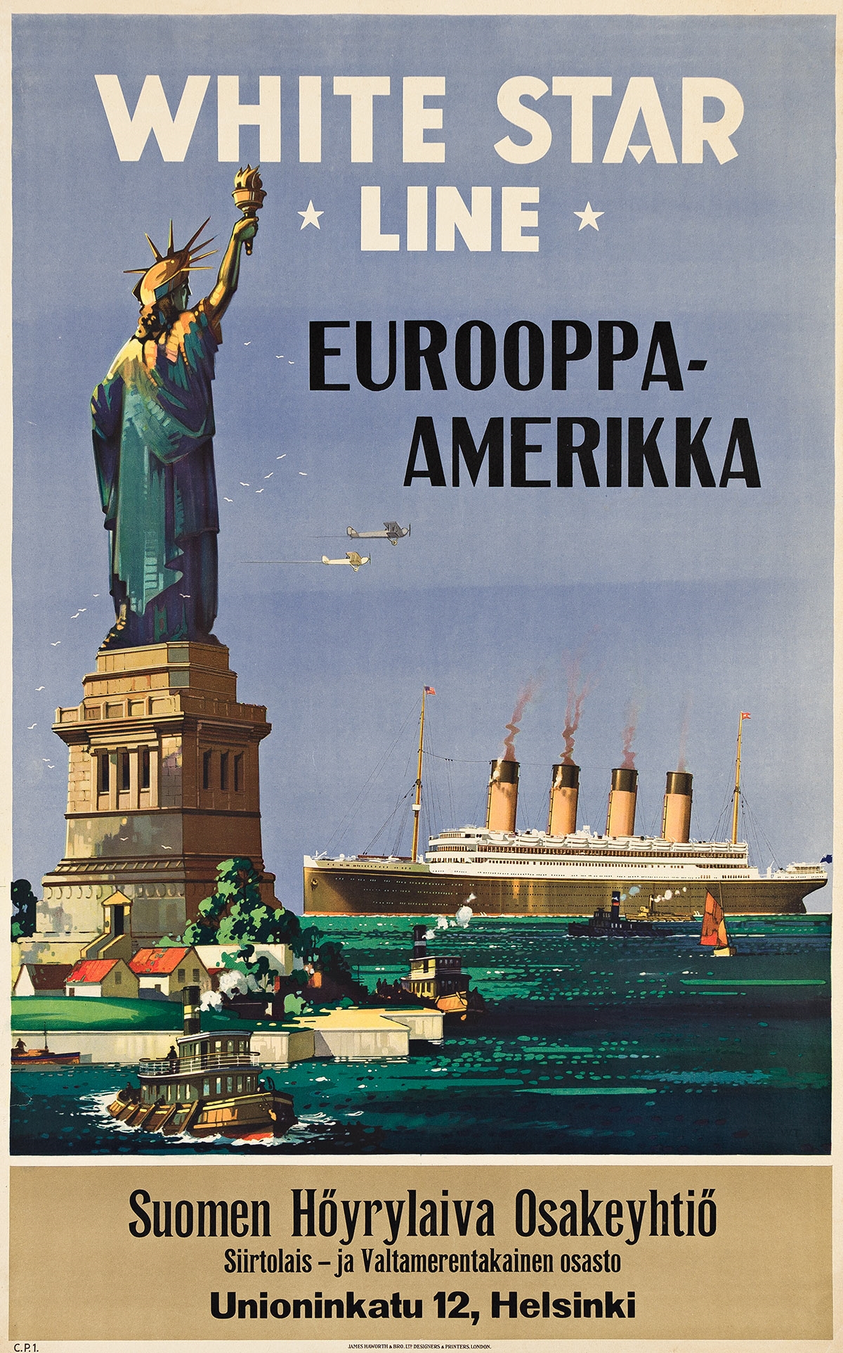 «Уайт Стар Лайн» — британская судоходная компания, основанная в 1845 году Джоном Пилкингтоном и Генри Уилсоном. В 1902 году «Уайт Стар Лайн» вошла в состав «Международной Торговой Морской компании» (англ. International Mercantile Marine Company) американского магната Джона Пирпонта Моргана (1837–1913). Авторы плакатов: Вальтер Томас (1894–1971), Уильям Джеймс Эйлворд (1875–1956), Оттомар Антон (1895–1976), Чарльз Шепард (1892–1962).