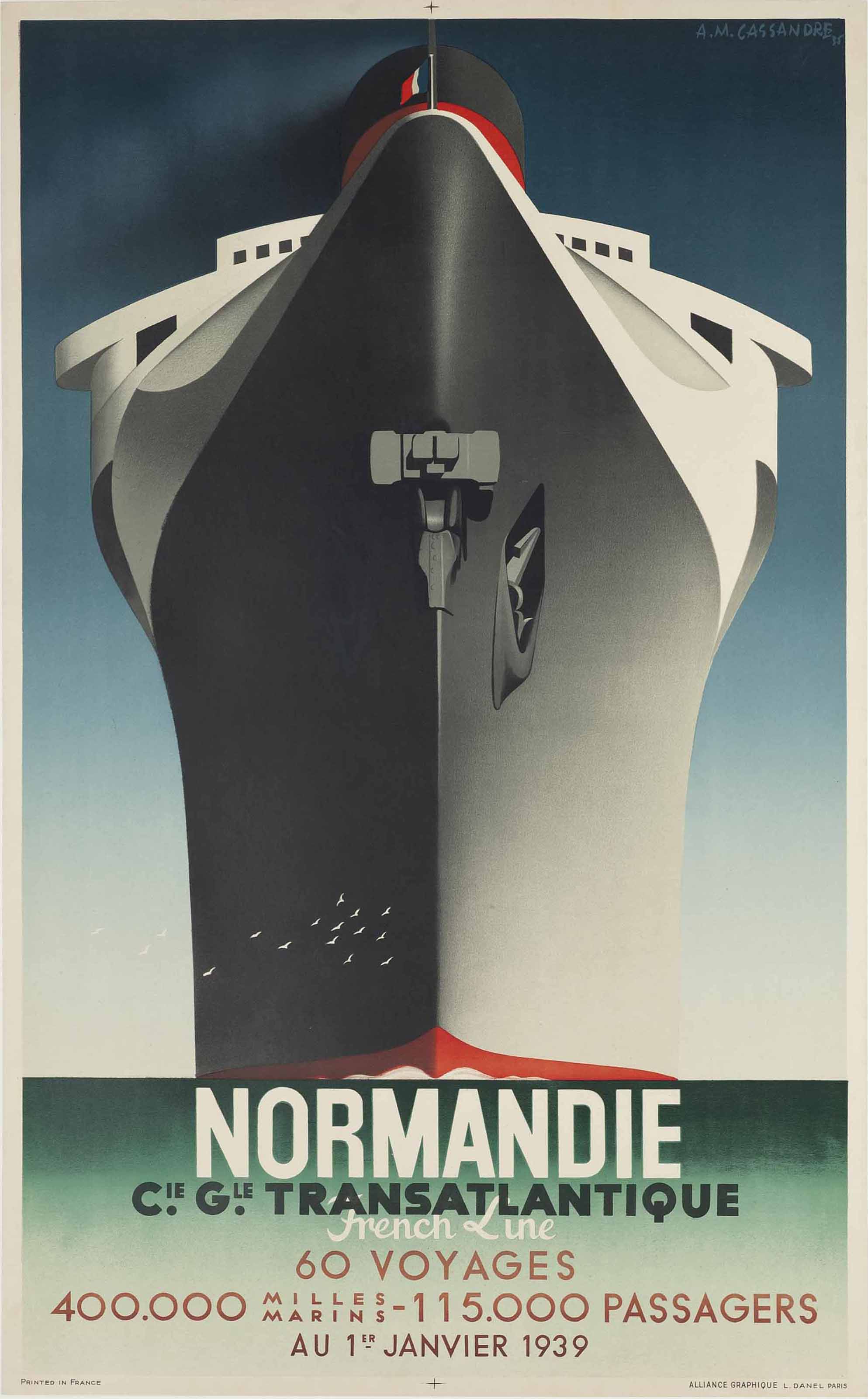 «Нормандия» и Кассандр неразрывно связаны. Но не только великолепный Адольф Мурон внёс свой вклад в представление нового суперлайнера пассажирам. Над плакатами для «Нормандии» работали и другие дизайнеры: Андре Вилькен, Губерт Геркомер, Жан Овинь, Питер К. Фасси, Вальтер Томас, Монтегю Биррелл Блэк. Каждый видел новый лайнер по-своему. «Нормандия» у Кассандра — гордость Франции, у Губерта Геркомера — вечерний праздник, у Монтегю Биррелла Блэка — скалы и утёсы Этрета. Композиционно в плакатах применяются традиционные для корабельной тематики приёмы — манипуляции с восприятием размеров, искажение перспективы, но стиль, в котором выполнены плакаты, придаёт им особый шарм.