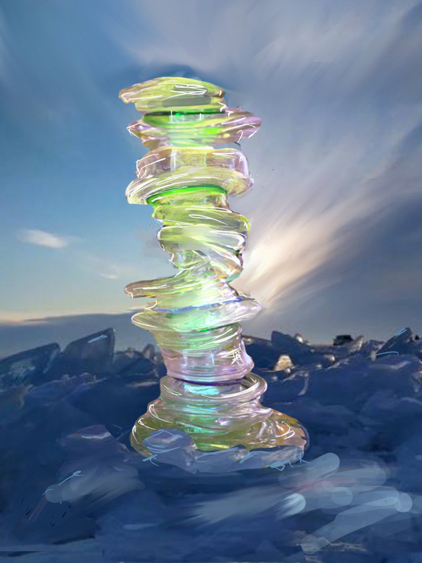 Зимний Байкал — время, когда природа замерла в ожидании, покрывая озеро слоем прозрачного льда. Как будто сама душа земли вытянулась и застыла в морозной тишине. В оплавленных пирамидках льда искрится свет, тянется к древнему, студеному небу над Байкалом, стремясь соединить мощь воды и кристальную чистоту небес. Это тихое волшебство, которое рождается в суровую стужу… Все это послужило вдохновением для создания концепции светильника.