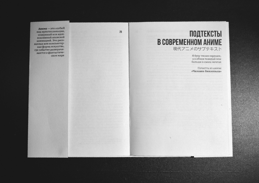 Большинство азиатских граждан читают и пишут книги справа налево. Мне хотелось сохранить эту особенность, поэтому у всех сносок и заголовков выключка сделана по правому краю.
