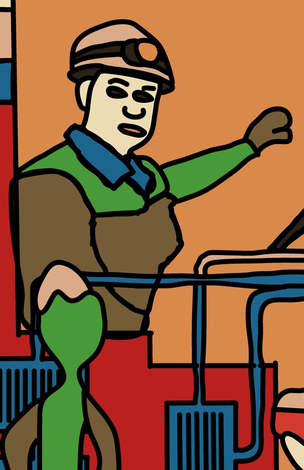 Рефтинская ГРЭС — это крупная тепловая электростанция, которая работает на угле. Идея состоит в том, чтобы показать дом в разрезе, в котором трудятся рабочие электростанции.
