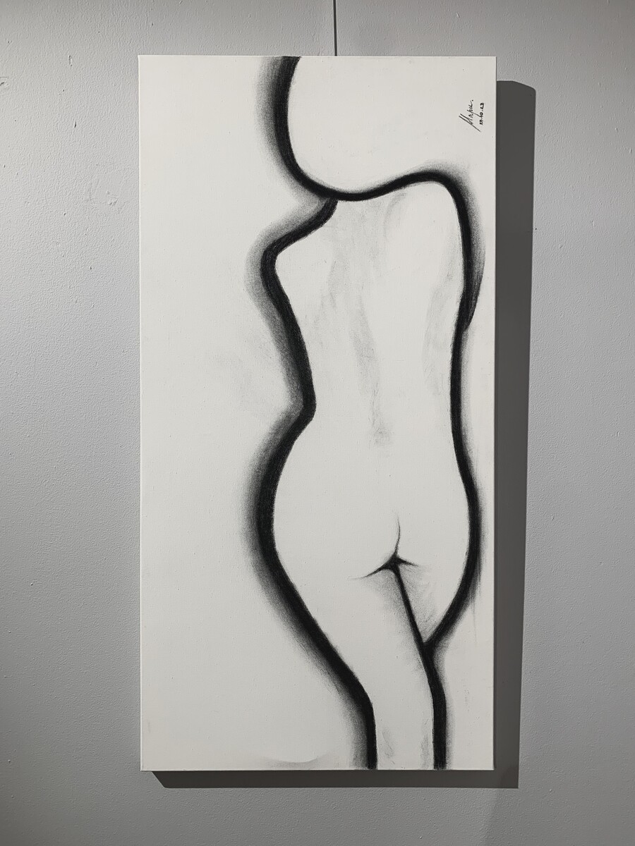 …sometimes you just freeze and not feel alive for a while, so only the form remains… Author’s technique «shadow contour», canvas, pencil, acrylic charcoal, varnish.