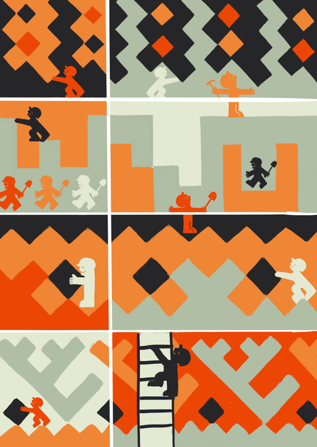 Это эскиз мурала для шахтёрского посёлка Саган-Нур в Бурятии. Я вписала фигурки угледобытчиков в бурятский народный орнамент, чтобы показать связь этого ремесла с историей и традициями. Человек градообразующий — необязательно гигант, заметный издалека — он может быть не виден с первого взгляда. Но без его небольшого вклада город не построить.