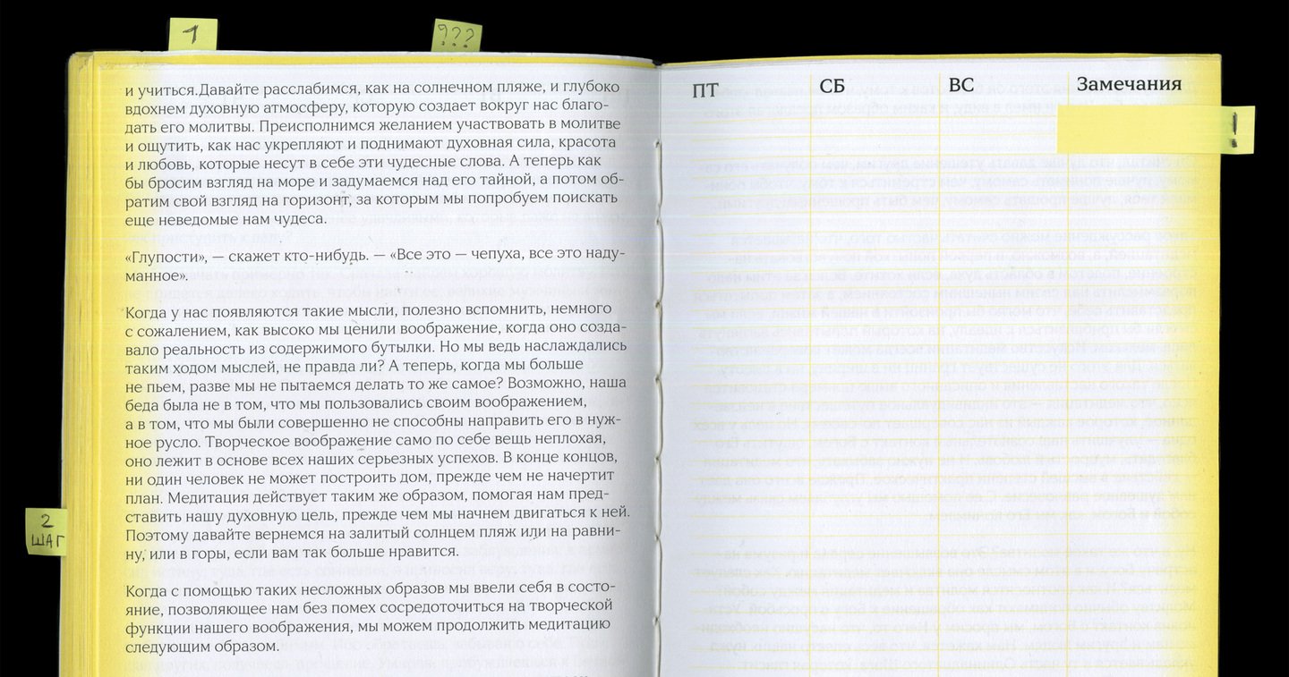 Так, книга становится личным дневником для человека, но при этом помогает сохранять порядок в голове и не отходить от идей 12 Шагов