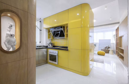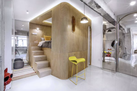 Все боксы для хранения повернуты на 10 градусов, а лишняя часть — удалена. Так дизайнерам удалось освободить пространство