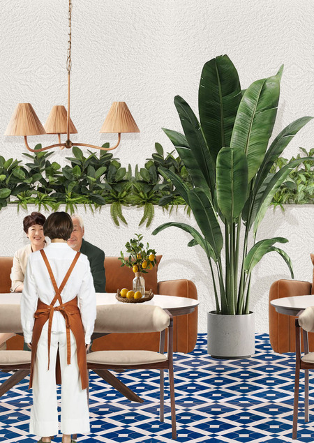 Лимонные деревья и живые цветы, создают ощущение открытого пространства и уюта