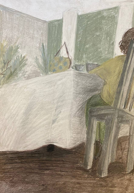 Графическая серия посвящена обстановке бара «Веранда 32.05». Это популярное место в саду Эрмитаж становится местом действия в моем авторском комиксе, посвящённом жизни и работе секс-просветительницы Татьяны Никоновой. Листы, выполненные соусом, становятся не только дополнением в комиксу, но и выступают, как самостоятельный портрет знаковой локации, который может развиваться в отдельную серию, посвящённую городскому пространству.