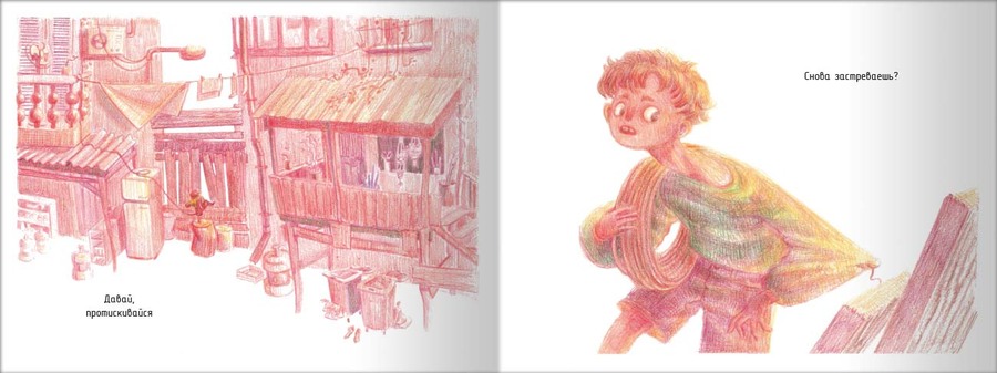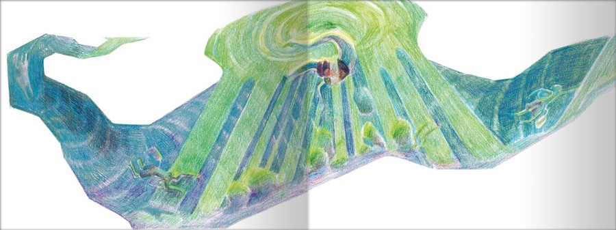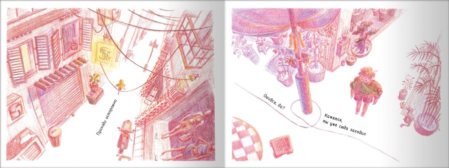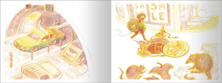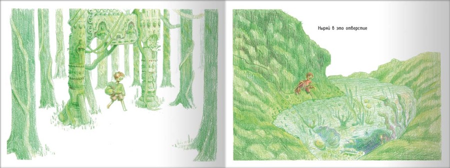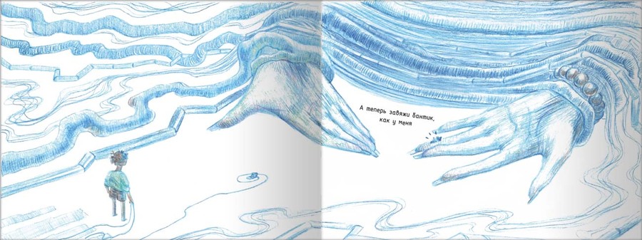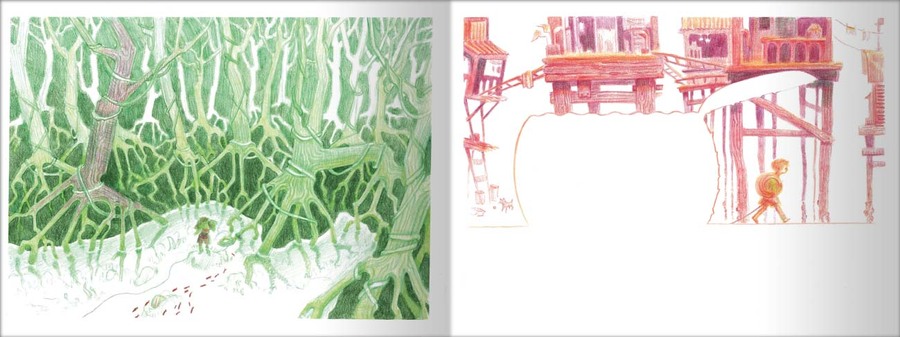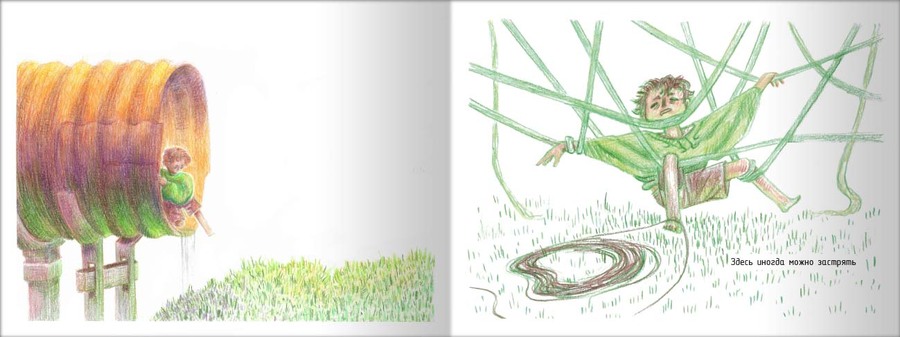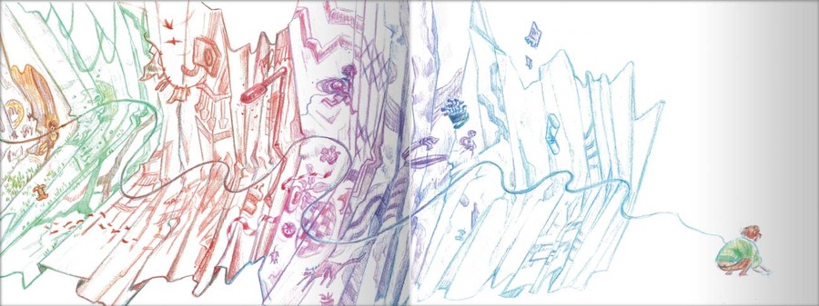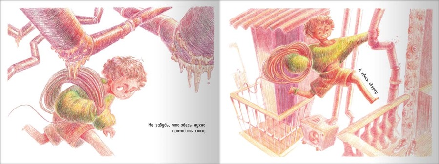 Таинственный голос указывает мальчику дорогу. Читатель наблюдает как он ведёт его через тёмные тоннели, увешанные лианами джунгли, длинные канализационные трубы, запутанные улицы и подводные пещеры. Куда же он заведёт главного героя? И почему мальчик тянет за собой длинный шнур? Хочет обойти с ним весь мир?