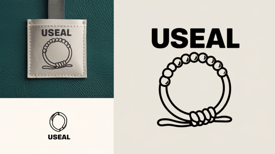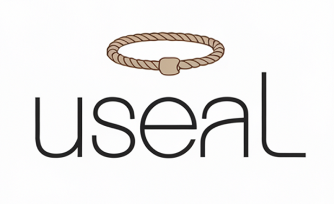 Design a minimalist logo for the brand USEAL, featuring a simple bracelet with a central clasp or bead, symbolizing handcrafted quality and the preservation of memories. The bracelet should have a natural, organic appearance, like a twisted cord, rendered in a neutral tone (beige or light brown) to evoke warmth and authenticity. Pair it with sleek, modern typography for 'useal, ' using clean, lowercase letters with soft curves, ensuring a balanced, elegant, and contemporary aesthetic. The logo should convey simplicity, craftsmanship, and emotional connection