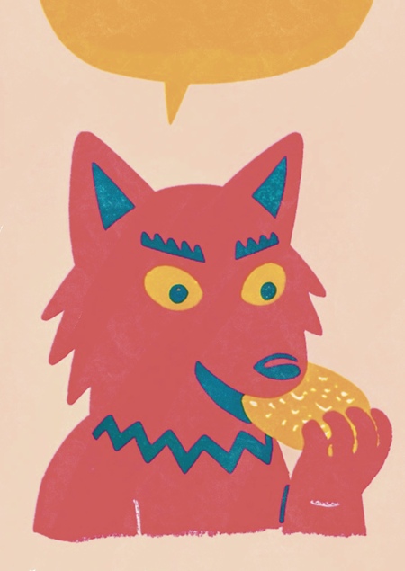 Промт: упаковка, пакет с волком пожирающим чебурек