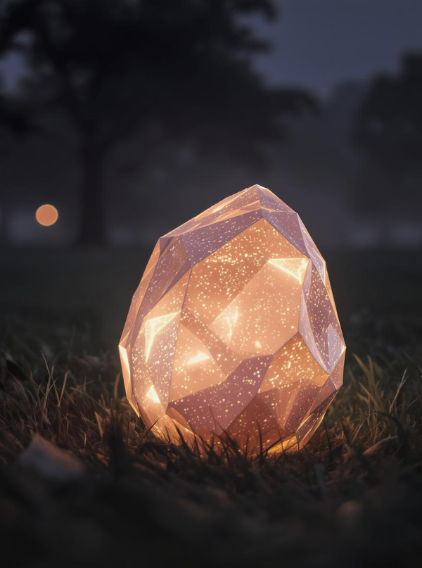 Объект в виде низкополигонального камня на берегу белого озера представляет из себя вариацию на эту тему, заигрывая с темой границы реального и игрового миров, пересечения их механик. Внутри него — привода и источники света, раздувающие его рубленную геометрию и наполняющую светом, а так же микрофон, благодаря которому он взаимодействует с окружающим миром в попытке понять безопасно ли сейчас проводить метаморфозу. Объект устанавливается на линейный привод, приподнимающий его над землёй во время превращения