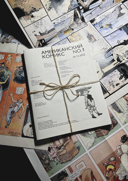 С другой стороны Octava. Россия, 1995? Можно было взять нейтральную антикву, да. Однако выбор был сделан в пользу лучшей читабельности и приятного визуала как в наборном тексте, так и в крупном кегле. Также перевод и редактура на русский англоязычных исторических изданий и статей являлось ключевым в работе над книгой. Не были взяты конкретные американские шрифты эпохи газет до 1930-х, потому что подразумевается серийность выпусков журнала о комиксе.