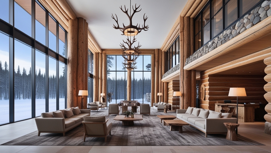 Зарни в переводе с коми языка переводится как золото. В проекте дизайна гостиницы, расположенной в Республике Коми, выделяется её суровая красота природы и этническое наследие региона.