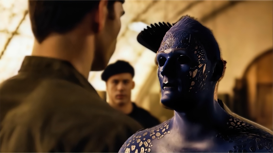 Таким образом, кропотливая работа с однородным и отчасти плоским гримом Мистик позволял создать эффект взаимозаменяемого морфинга с одного персонажа на другого.