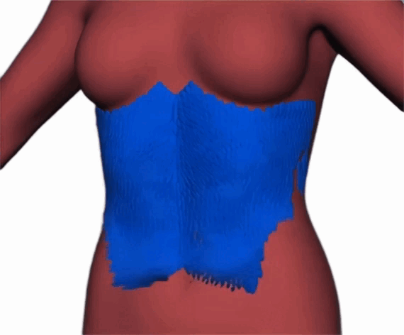 «Разница заключалась в том, что наша ткань принимала форму без пошива; она также безопасно прилипала к коже и двигалась вместе с Ребеккой. Пищевые красители окрашивали как накладки, так и кожу, сохраняя прозрачность»