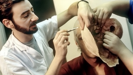 Процесс нанесения грима/«Муха»/1986/супервайзер по гриму Стефан Дюпюи