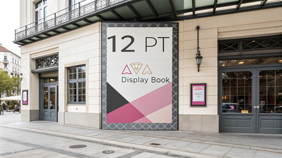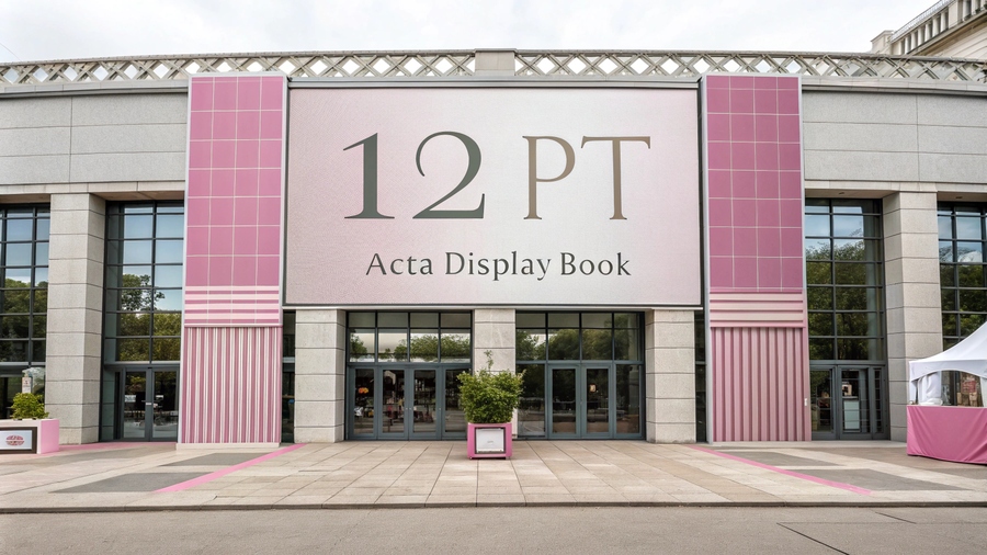 /imagine prompt: make an exterior billboard design for a design book festival called «12 pt», colours gray and pink, antiqua, in a style of a program called inDesign, font Acta Display Book