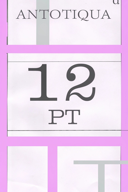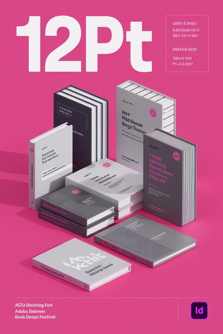 /imagine prompt: make a poster design for a design book festival called «12 pt», colours gray and pink, antiqua, in a style of a program called inDesign, font used: Acta Display Book