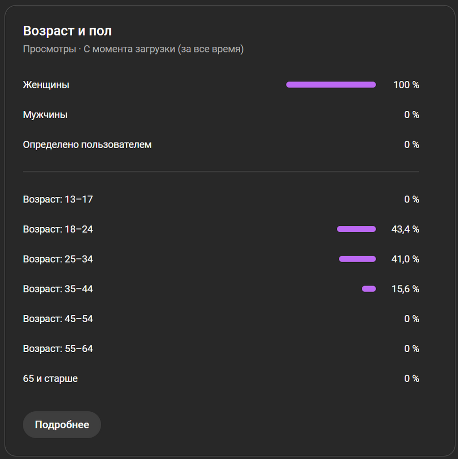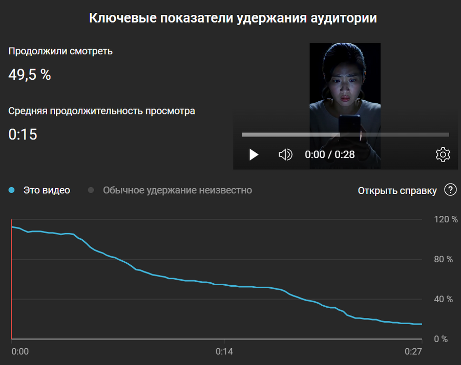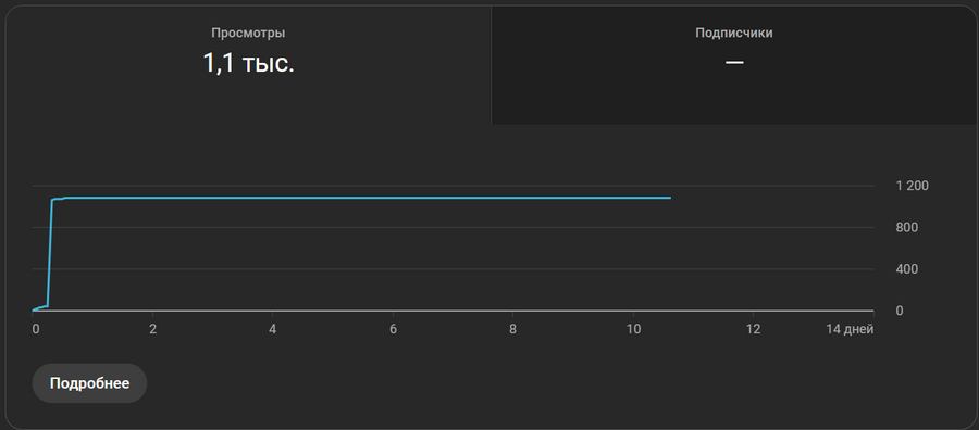Результат оказался самым лучшим из всех публикаций: 1000 просмотров за первые сутки с удержанием в 50% (15 из 27 секунд) и 7 лайков. Однако на следующие сутки видео перестало попадать в рекомендации и просмотры упали до 0.